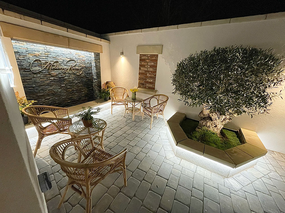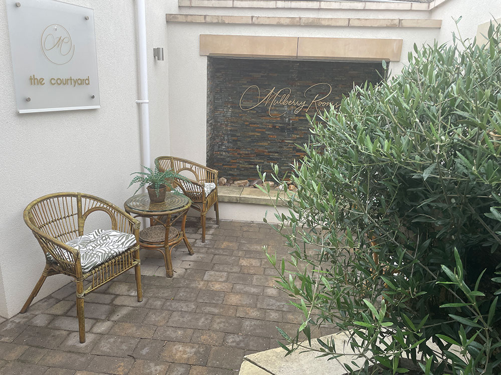 There are several seating areas both inside and outside in the ‘Courtyard’ where you can relax before during and after your treatment. The open air courtyard has a tranquil feel with the sound of water from the ‘Water Wall’ giving you a relaxed moment during your visit to the Mulberry Rooms.